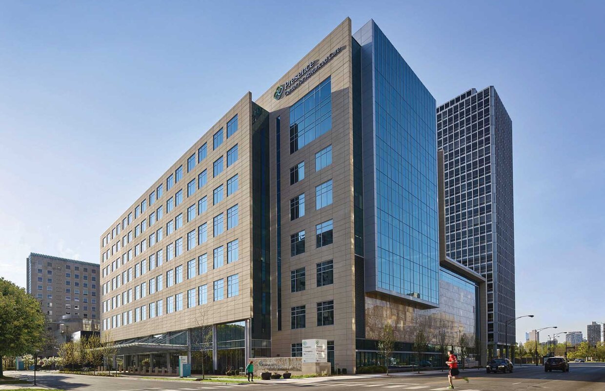这座 10 层的高级护理中心通过玻璃天桥与现有医院相连,提供门诊护理、医疗办公空间、骨科中心以及提供放射治疗、肿瘤内科、输液治疗和整体治疗的综合癌症中心。  此外,该中心还设有新的芝加哥高级减肥研究所以及女性成像套件,包括 3T MRI、PET CT、低剂量乳房 X 光检查和数字 X 射线。一楼、五楼和六楼提供门诊服务,设有 30 个检查室、12 个输液室、36 个术前/术后病房、4 个手术室、超声室、胃肠道实验室、康复健身房和手术室。一楼新建了沃尔格林药房。可容纳 350 辆车的停车场位于较低的三层。
